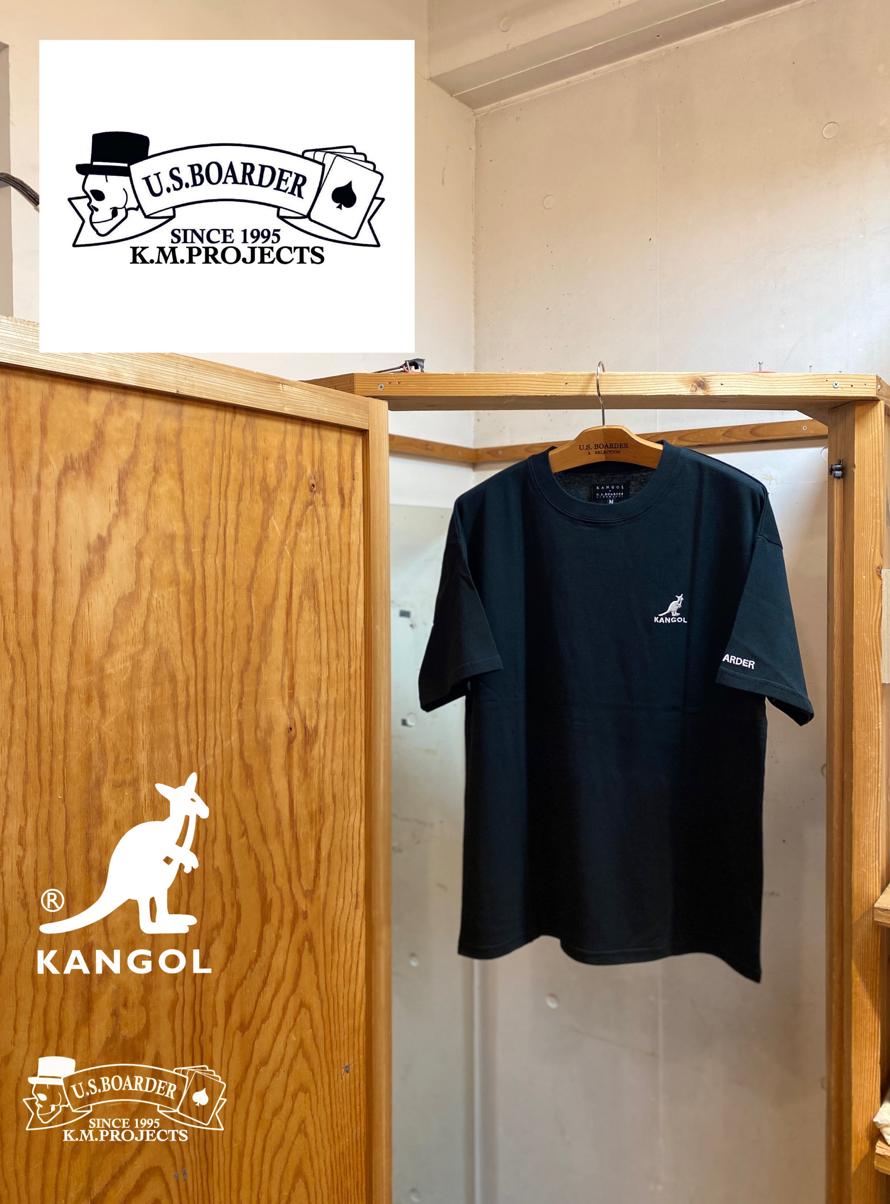 usboarder T-shirt S/S KANロゴT KANGOL®︎ U.S.BOARDER ダブルネーム Black ブラック 黒色 Tシャツ freedom philosophy カンゴール ユーエスボーダー