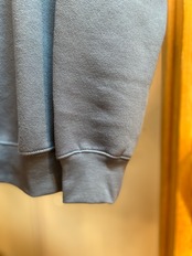 起毛素材で暖かく、生地感は肉厚で軽やかな着心地が特徴的です。