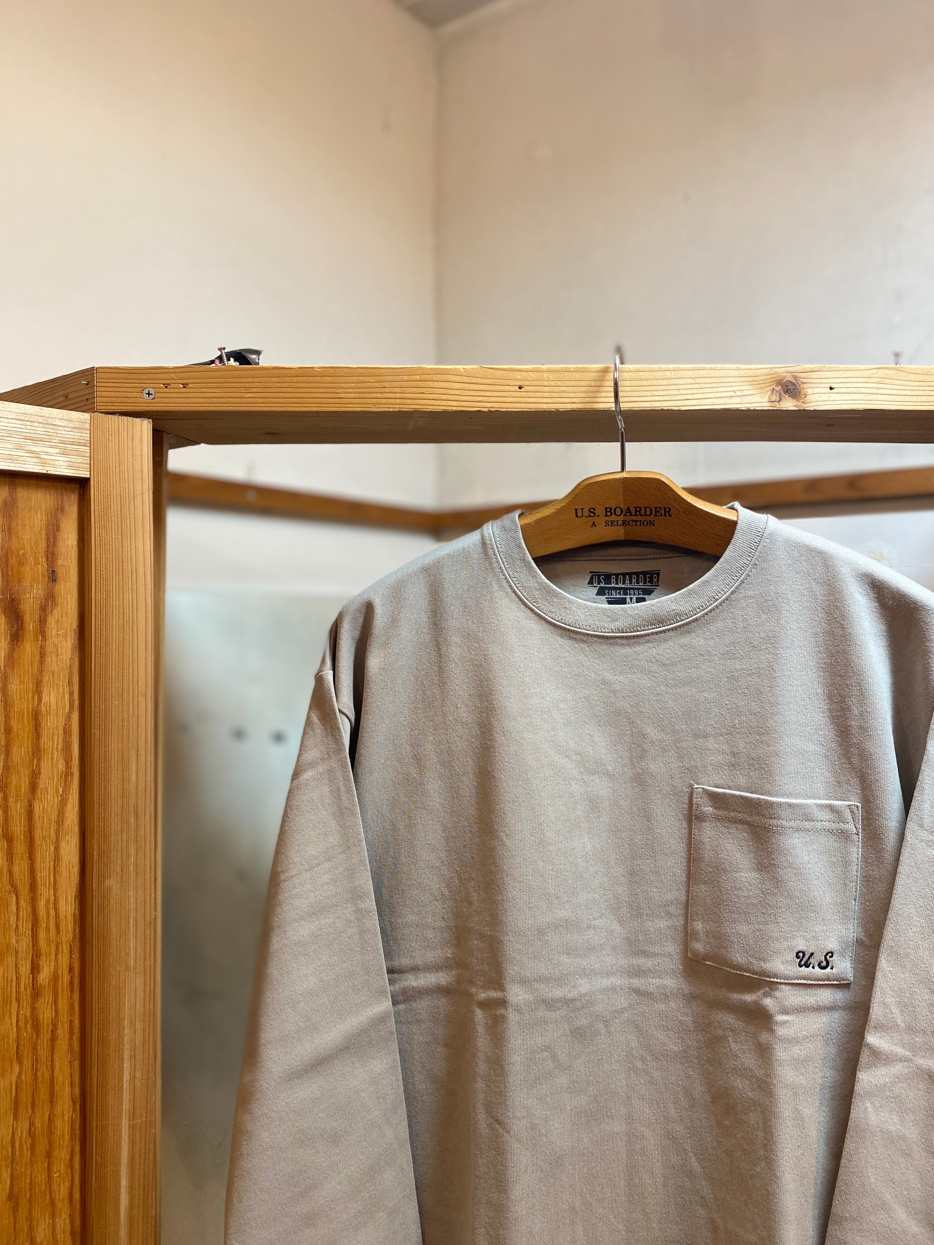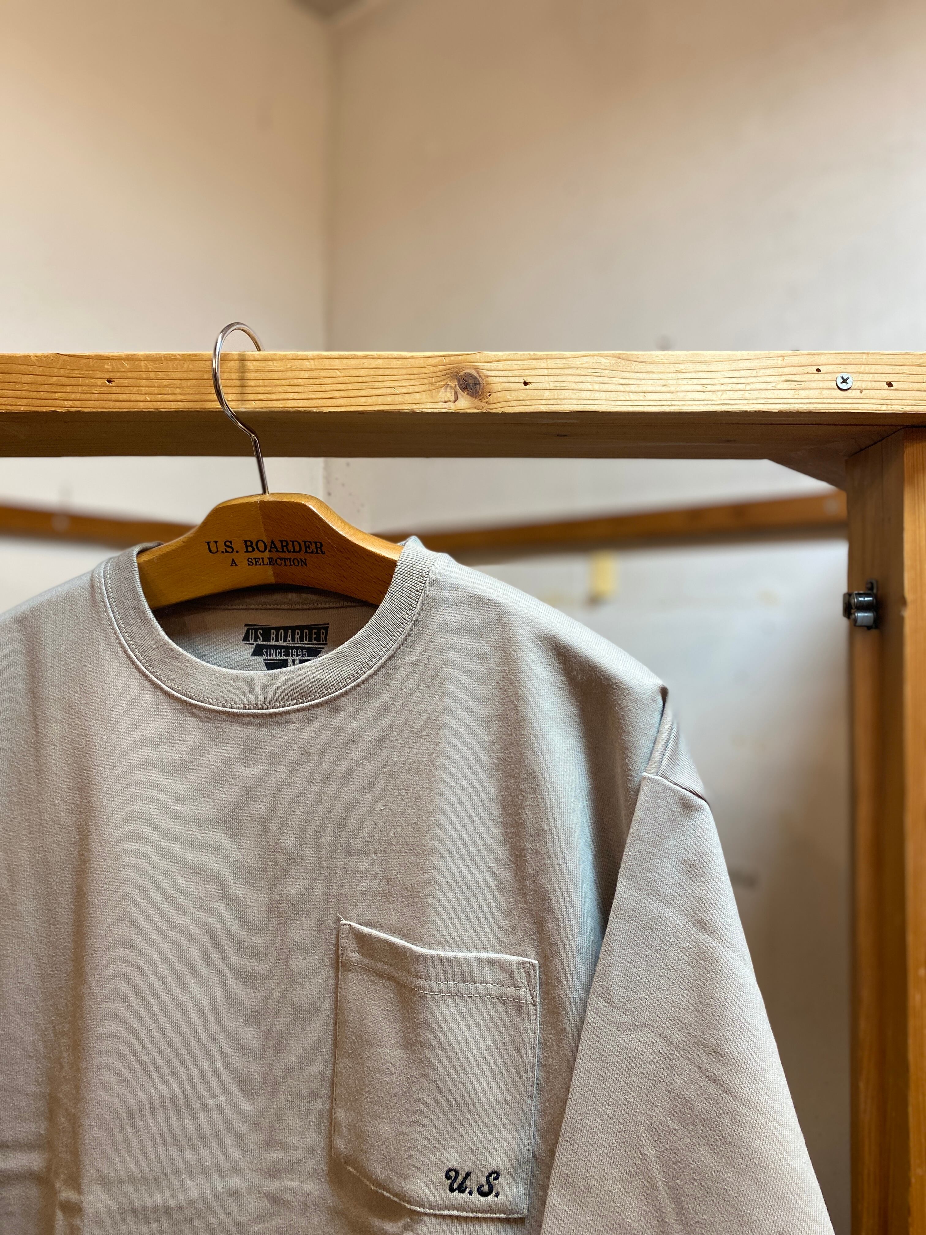 U.S.BOARDER L/S ヘビー天竺 Greige グレージュ GRG Long sleeve T-shirt 天竺 Plainstitch ヘビーウェイト ロンT usboarder ユーエスボーダー