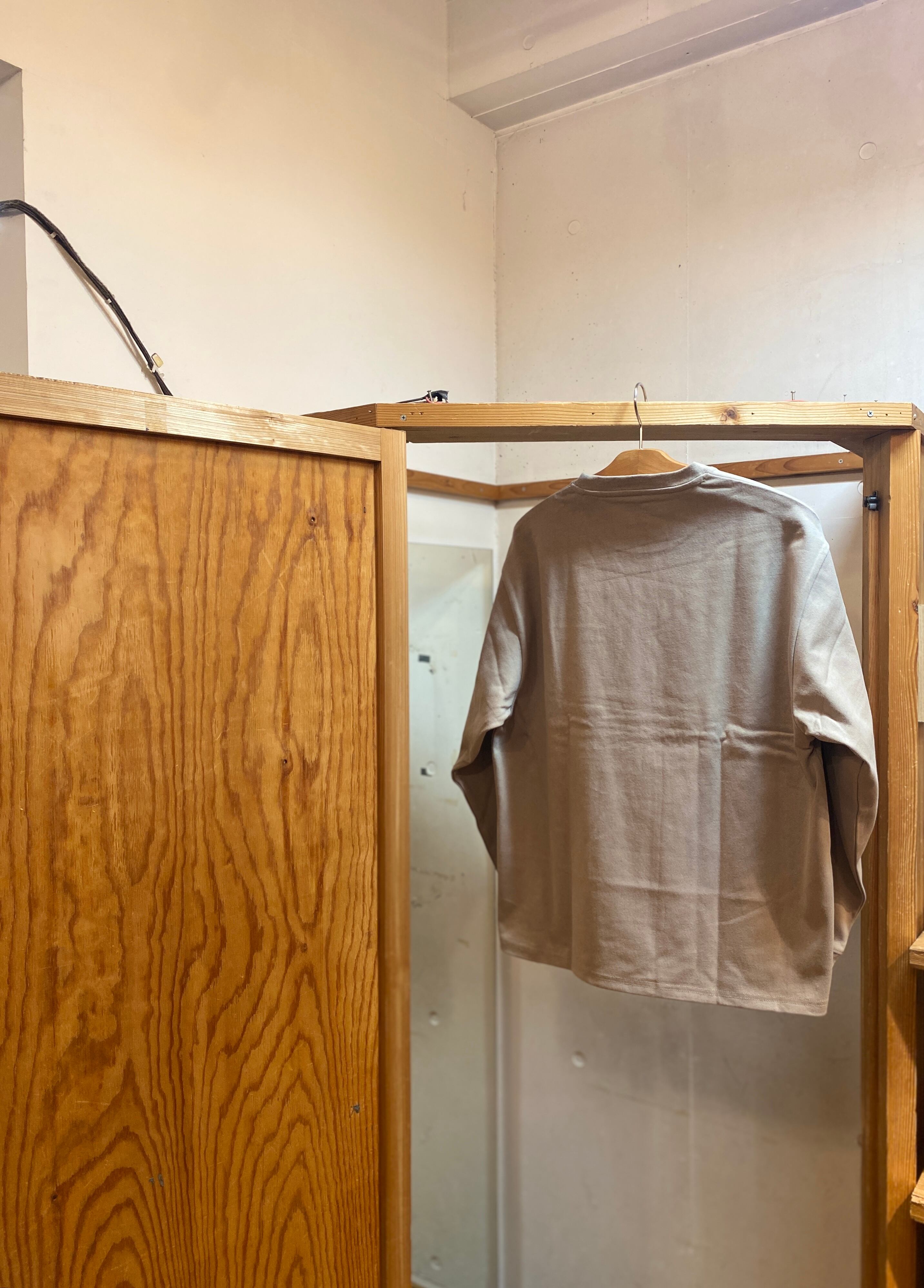 ゆとりのある袖口、アームホールに着丈が短めな点も特徴的です。緩めサイジングでも丈感が気になりません。ジャストサイズなら、ボトムスのベルトが隠れるぐらいの着丈でございます。
