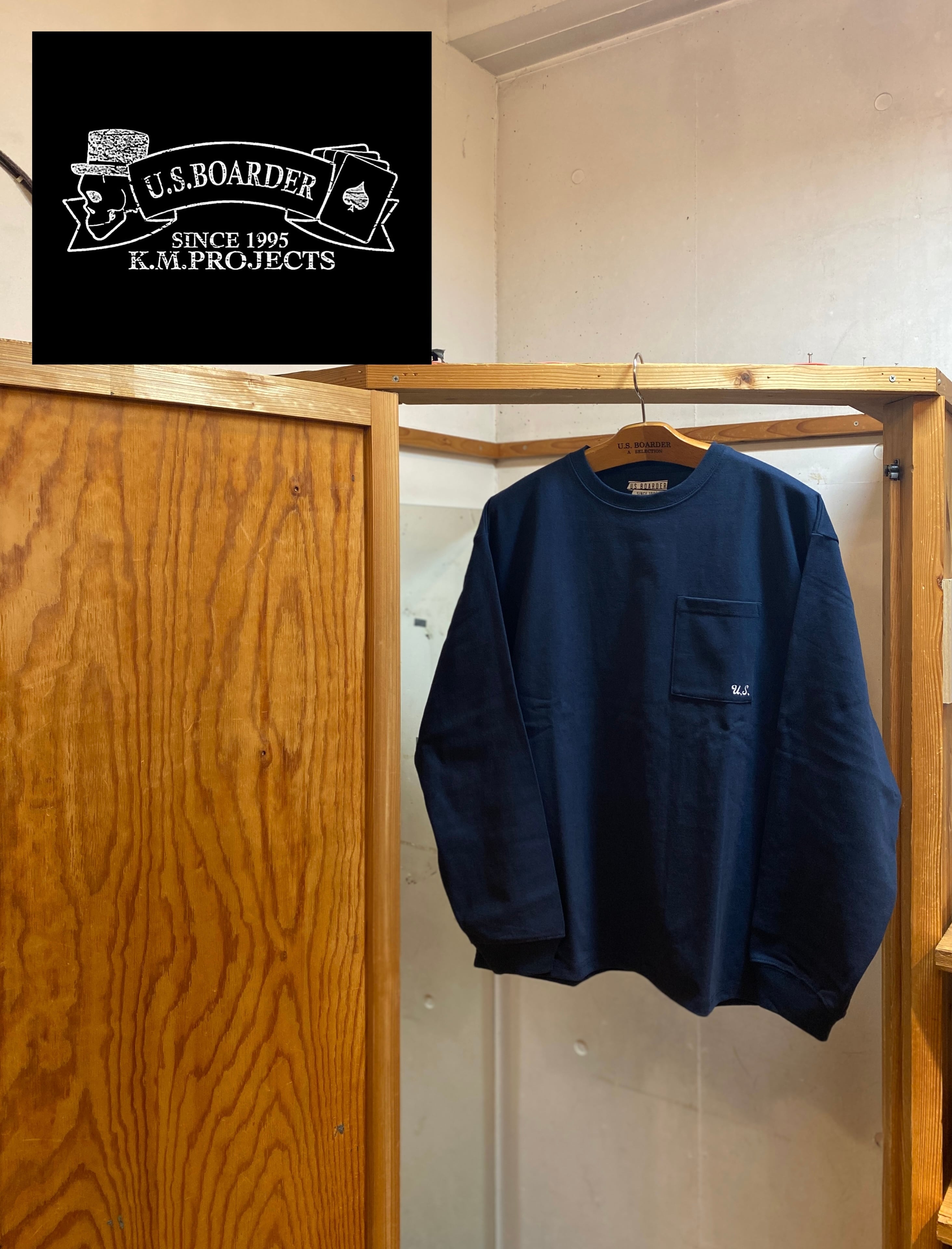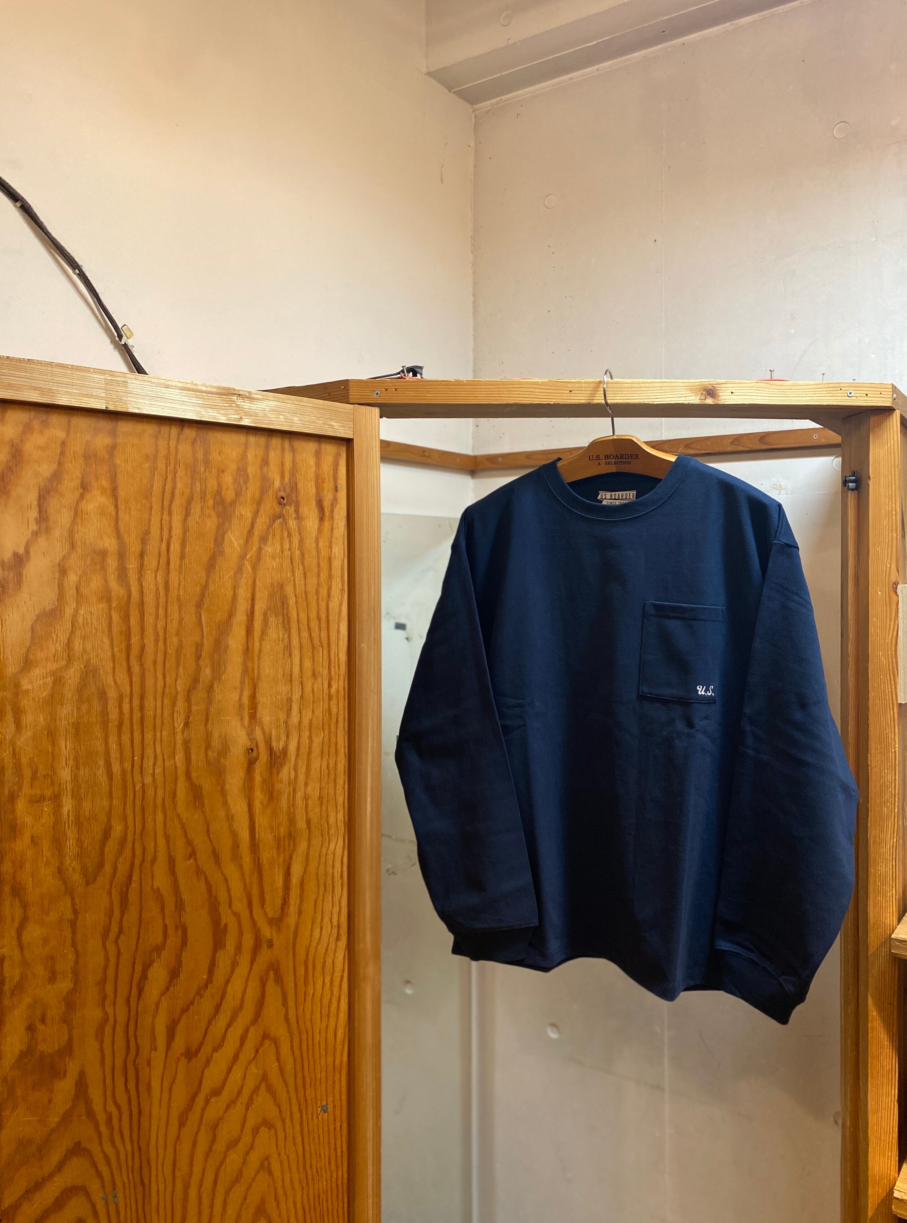 U.S.BOARDER L/S ヘビー天竺 Navy blue ネイビーブルー NVY Long sleeve T-shirt 天竺 Plainstitch ヘビーウェイト ロンT usboarder ユーエスボーダー