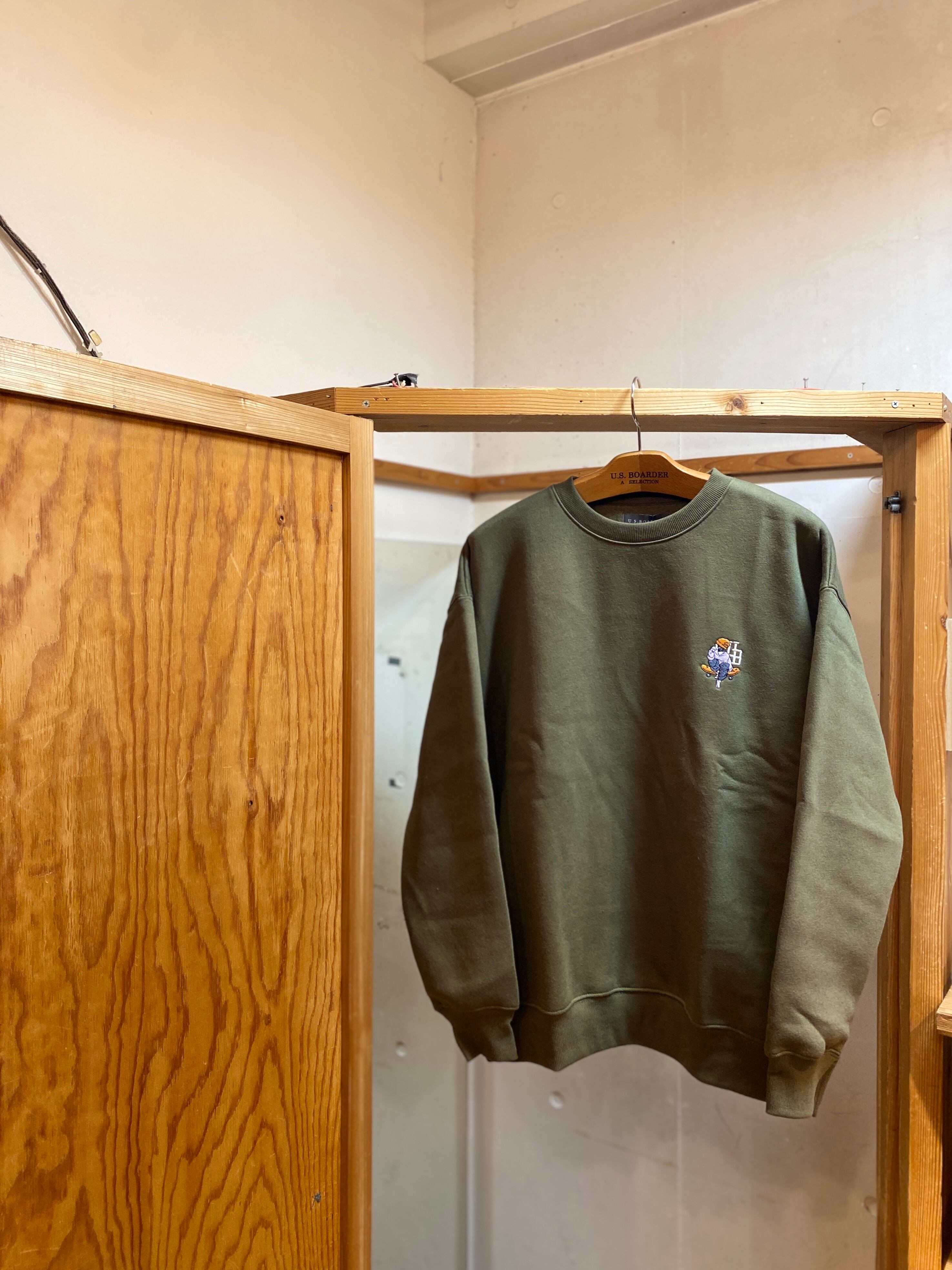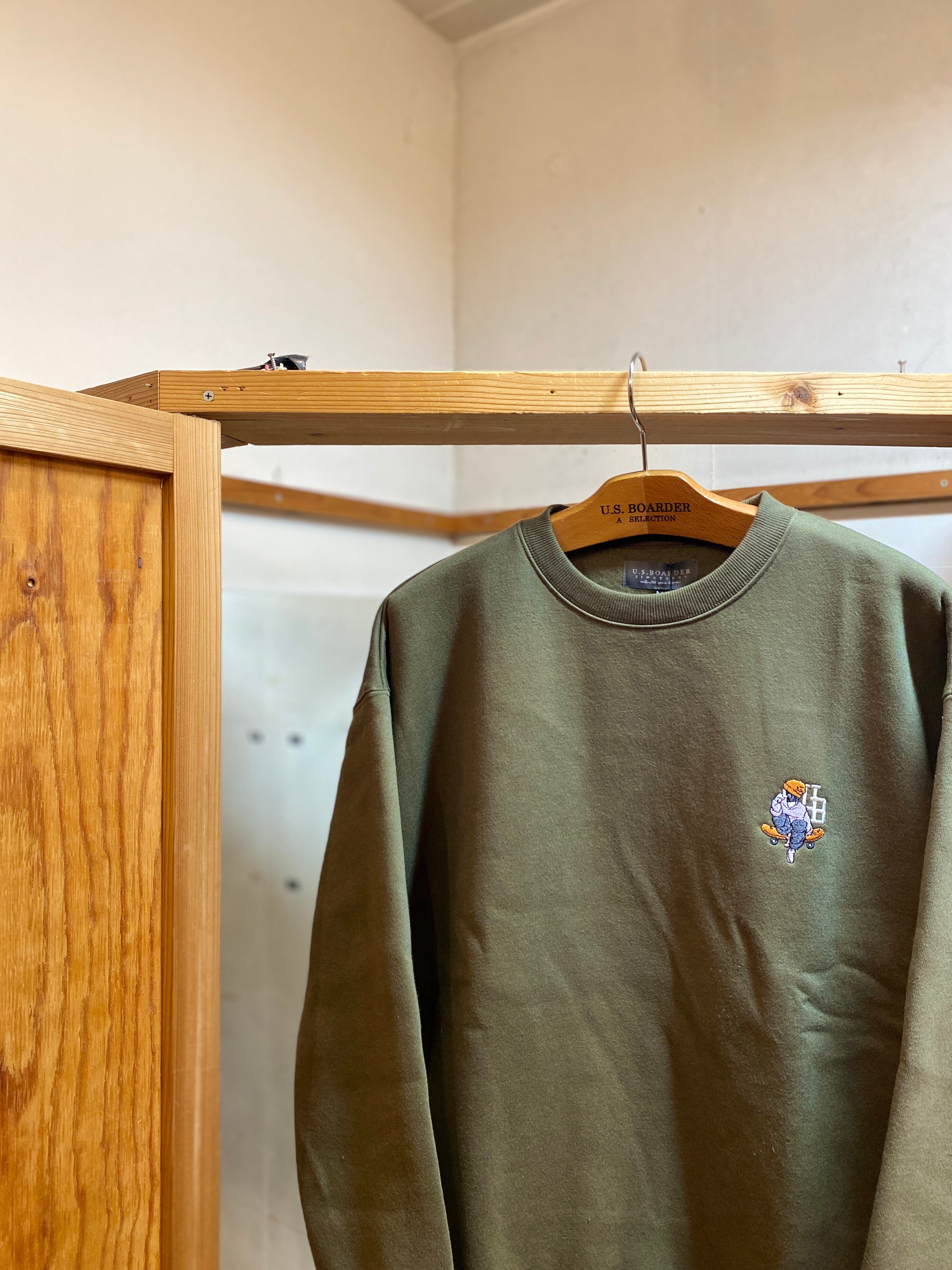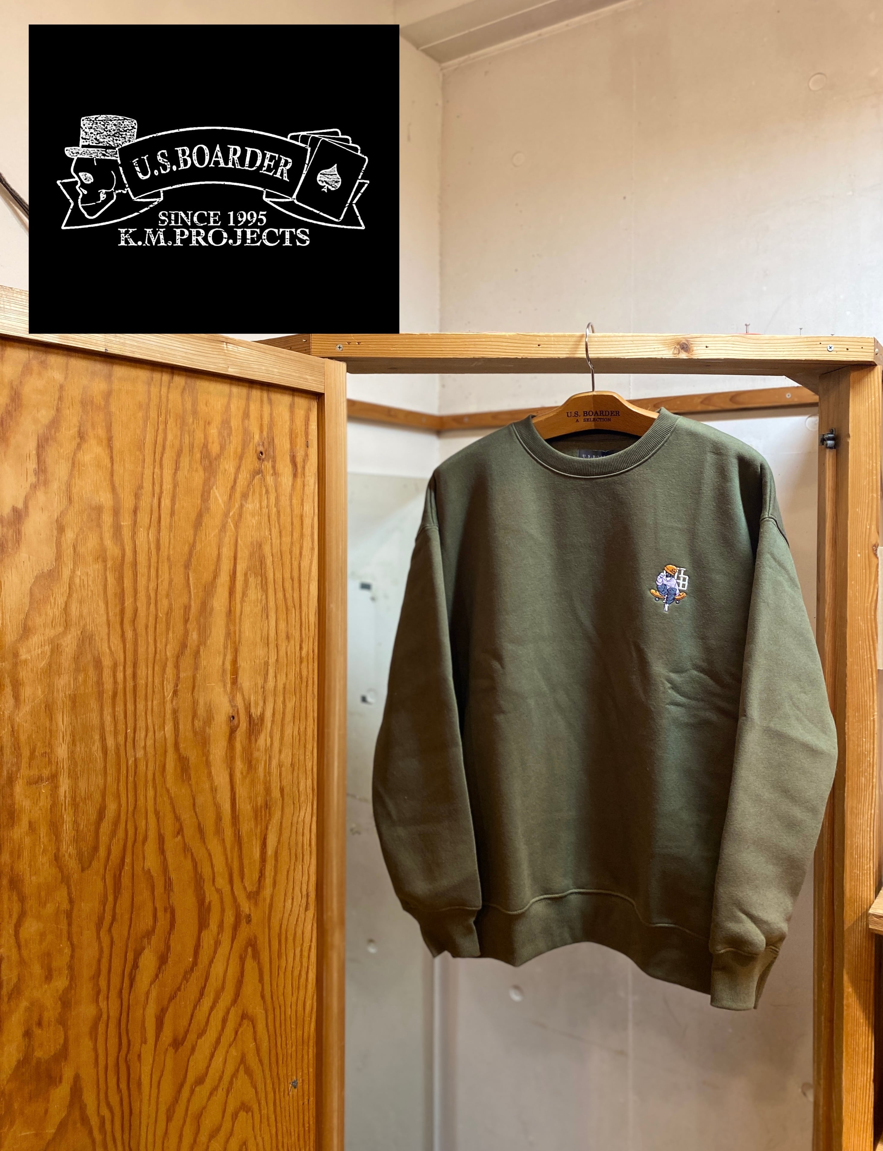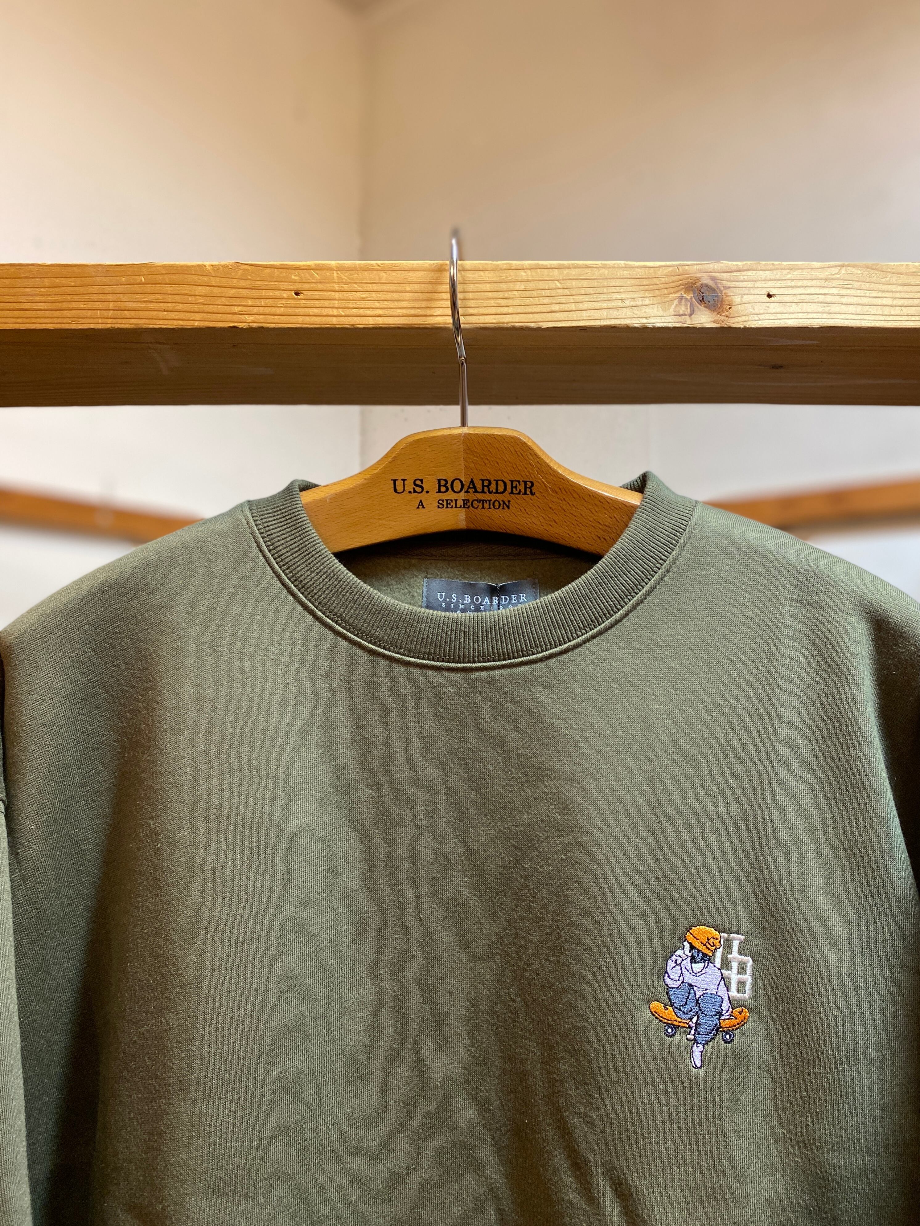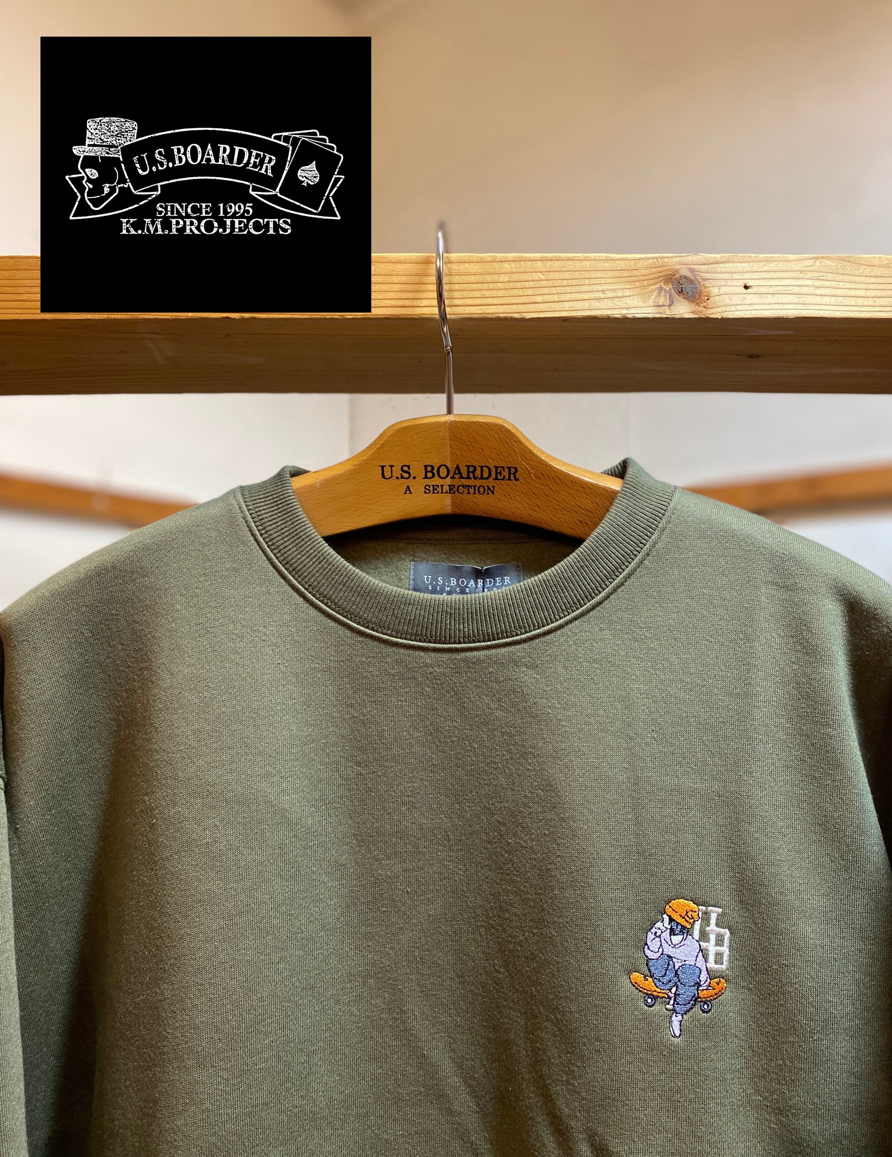 U.S.BOARDER 裏起毛SWT スケーター KHK カーキ 緑色 刺繍 ガール girl スケボー オーバーサイズ sweatshirt usboarder ユーエスボーダー