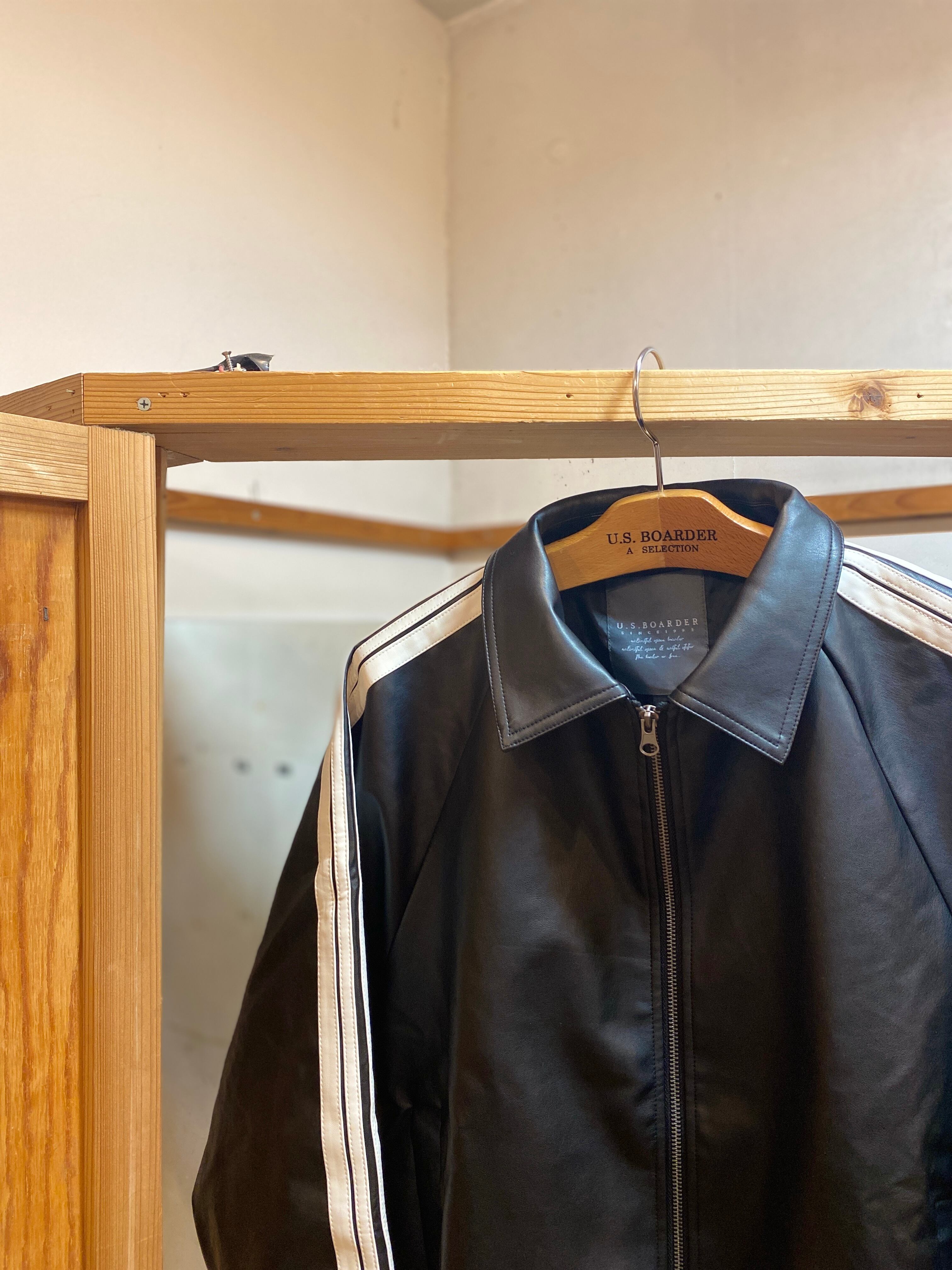 U.S.BOARDER PUサイドブルゾン レザーラインジャケット Black BLK ブラック Jacket レザー レザージャケット ブルゾン メンズ レディース ユニセックス u.s.boarder ユーエスボーダー